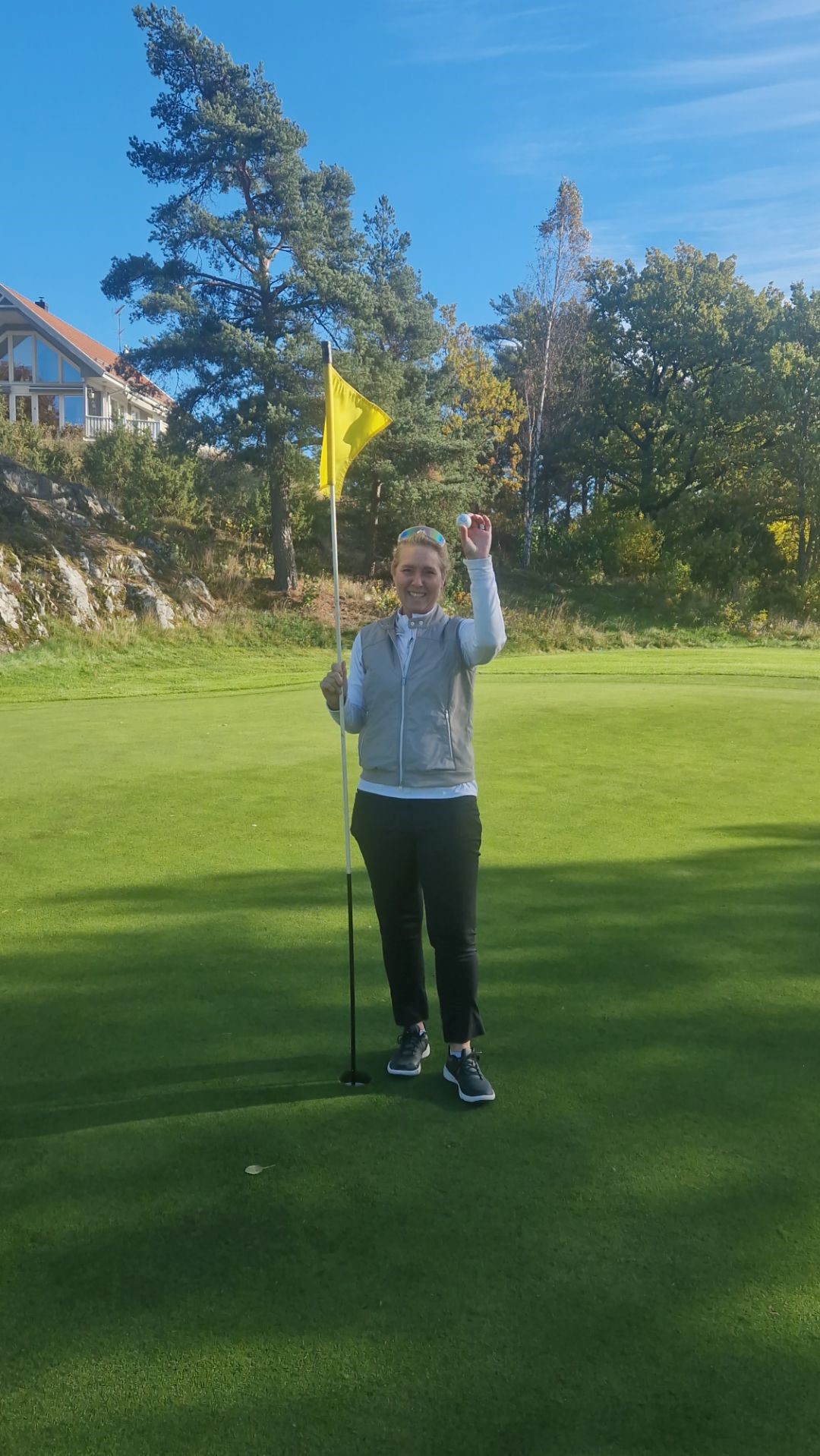 Under dagens tävling Krögarslaget så slog Anneli Nordström Lundqvist till med sitt livs andra HIO. Detta var på hål 12. Hon slog en bra järn 6 som hon trodde skulle bli lite kort om flagg, men icke sa Nicke, bollen hade letat sig ner i hål. Anneli har i många år haft en flaska skumpa liggandes i husbilen för just en HIO. Den skulle nu drickas upp tillsammans med spelkompisarna för dagen för att fira. GRATTIS Anneli! Om det är årets sista HIO på Burvik återstår att se.